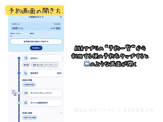 ANAアプリの”予約一覧”から利用する便の予約をタップします