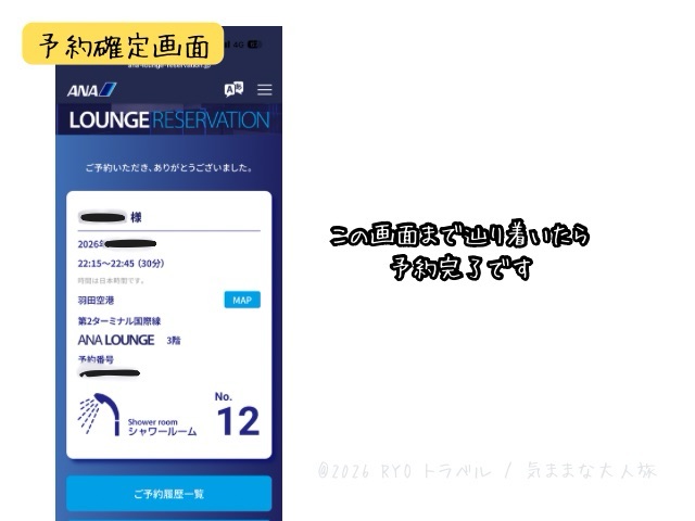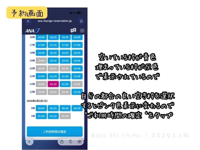 空き枠さえあれば、ラウンジ入室してからでも直前予約できます。