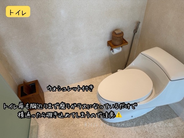 ・ バスルームやトイレの壁、扉がガラス張りで、プライバシーが無い。(家族でもさすがに恥ずかしい)