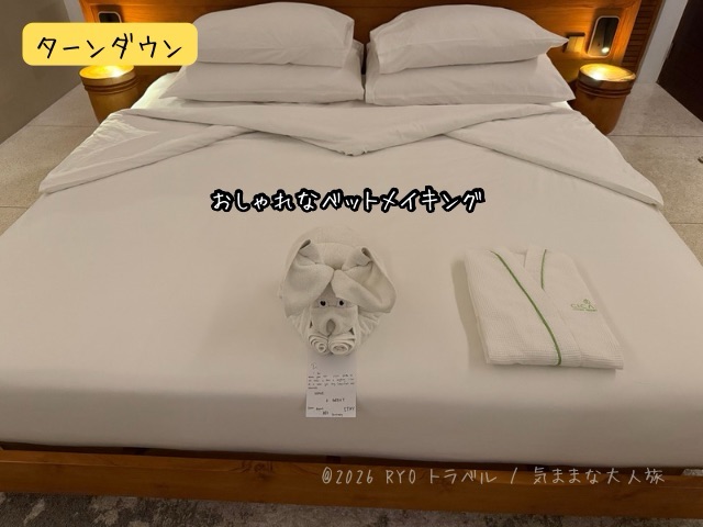 また、各部屋をターンダウンに回る夕方17時ごろに「Do Not Disturb」の表示を出していると、スキップされてしまうようでした。(ホテル内レストランで夕食を取っている間(18時半~21時頃)は「Do Not Disturb」表示を外していましたが、清掃には入らなかった模様でした)