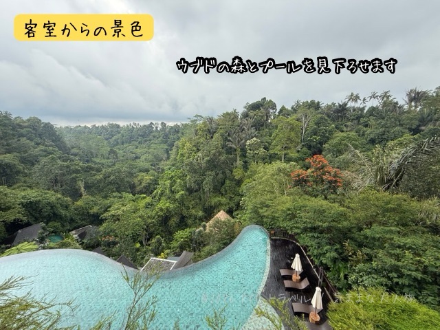 崖に沿って建てられたホテルなので、客室やホテル内の各施設からはウブドの森が目前に広がり、滞在中は常に自然に囲まれている印象のホテルでした。
