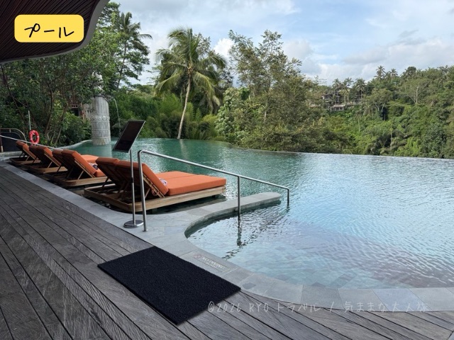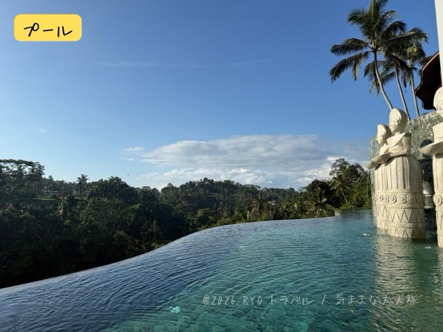 地下1階(2階と表示されています)がバーの横のプール、地下2階(3階と表示されています)にレストラン横がプールとなっています。どちらも自然に向かってインフィニティプールとなっていて、見える景色に大差はありません。(高さが変わるだけ)