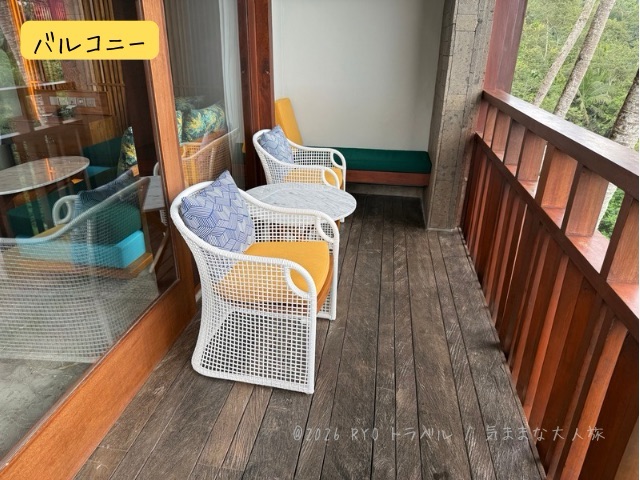 バルコニーには、ベンチ、テーブル、椅子があり、大自然を見ながらゆっくり過ごすことが出来ます。