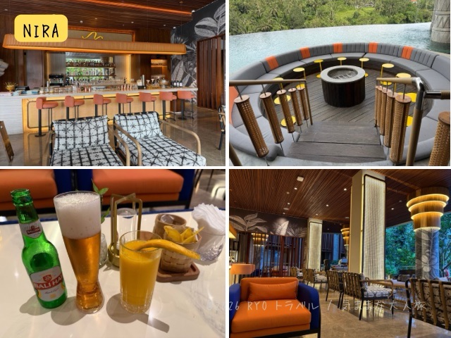 インフィニティプールとジャングルに面した位置にバーラウンジNIRAがあり、軽食やアルコール、ソフトドリンクを楽しめます。