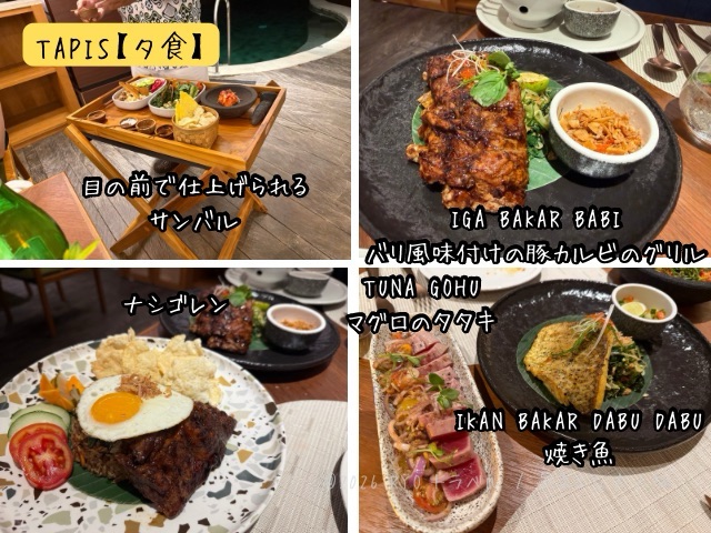 滞在中は様々な料理を頼みましたが、味付けは日本人の舌にも合うような感じで、どの料理も美味しくいただけました。特にナシゴレンやIGA BAKAR BABIの豚肉が、驚くほどホロホロに柔らかく、甘辛く美味しい味付けがされていました。