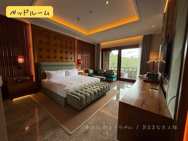 今回宿泊した客室は「Hill Panoramic Suite, 1 Bedroom Suite, 1 King」でした。アップグレードはありませんでしたが、一番見晴らしのいい客室にしていただけたそうです。