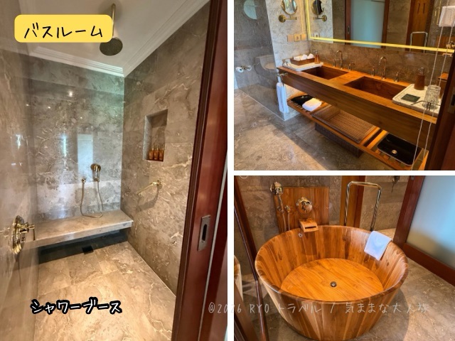 円形の木製バスタブは肌あたりが優しく、縁に首を引っ掛けてだらんと浸かるのが最高に気持ちよかったです。