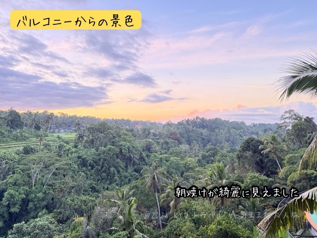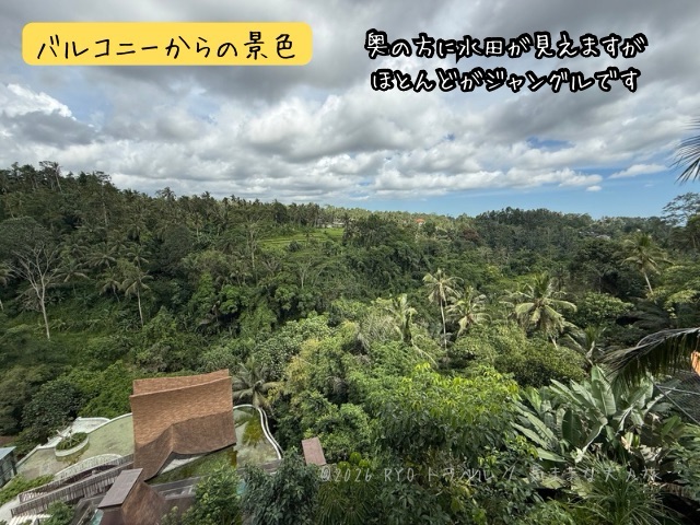 眺望は抜け感があり、目線より下がジャングルと水田、目線より上は空といった感じで自然豊かな景色が広がっています。