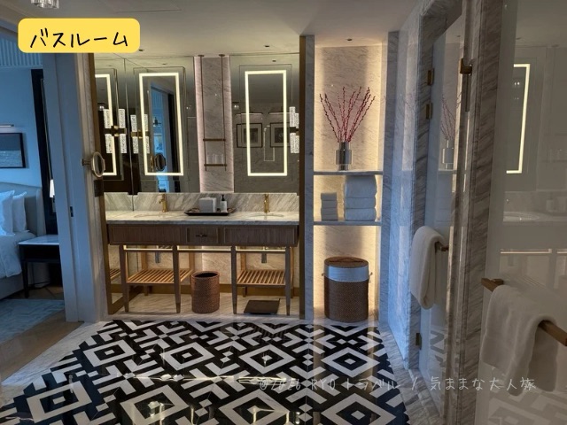 バスルームはシャワーブースとトイレが仕切られており、バスタブ付きでした。洗面台のシンクは2つついており、朝の身支度でも同行者と並行して行えるので非常に使い勝手が良かったです。