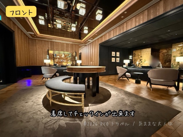 チェックインカウンターは宿泊客それぞれが座って手続きが出来るデスクが3セットあり、着席すると冷たいウェルカムドリンク(お茶)とおしぼりが頂けました。