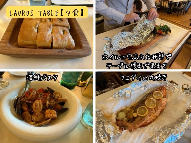 お通しとして出てくるフォカッチャもほかほかで温かく、絶妙な塩加減が美味しかったので、このレストランのディナーを利用される方は楽しみにしていてください。(温かいうちが美味しいので、是非早めに召し上がってください)