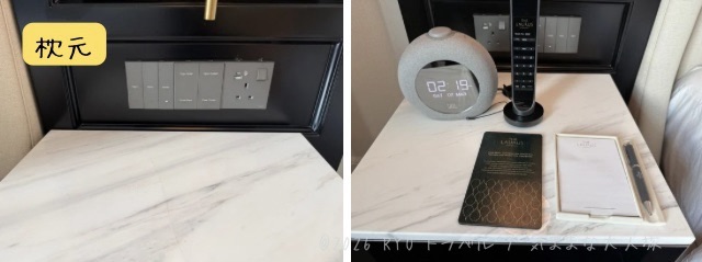 枕元には両サイドにコンセントがあり、BF型とUSB Type-AとCでした。日本のコンセントを挿すには変換プラグが必要になりますので、ご注意ください。