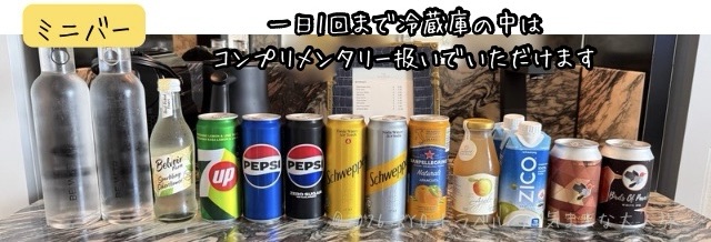 冷蔵庫の中にもビールやジュース各種があり、一日1回まで冷蔵庫の中はコンプリメンタリーとなっていました。(追加は有料となります)