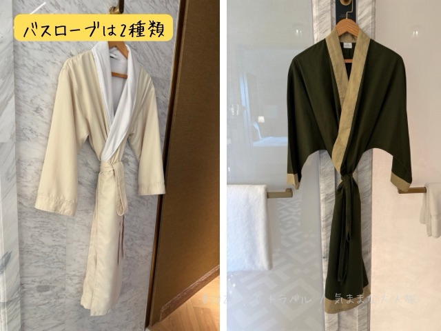 バスローブは薄手のモノと、タオル地の厚手のモノの2種類があり、用途に応じて使い分けることが出来ます。サイズはフリーサイズでした。