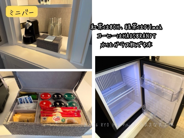 ミニバーはHAUSBRANDTのエスプレッソのカプセルが3種、紅茶がマレーシアブランドのBOH、緑茶はDilmahでした。