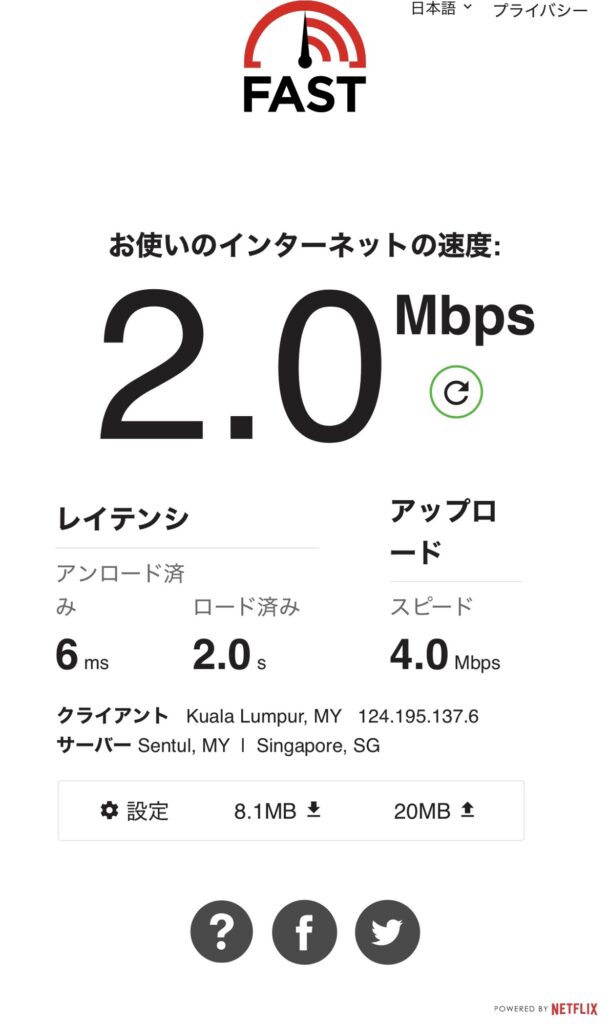 無料Wi-Fiは速度は2Mbpsと低速すぎて、ブラウザを開くだけでも時間がかかり、ストレスでした。YouTubeの動画も途中で止まります。