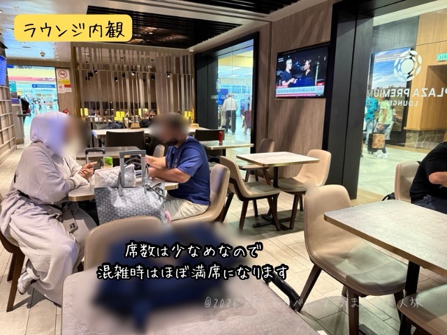利用者の皆さんは静かに利用していますが、ラウンジ自体の面積があまり広くは無いので、混雑してくると圧迫感が少しあります。
